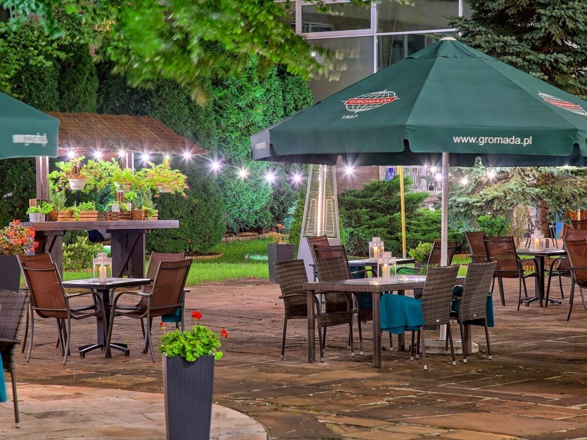 Patio "Zielony Zakątek" o powierzchni 1200m2 to prawdziwa oaza spokoju w sercu hotelu. Otoczone zielenią, kwiatami i roślinami tworzy urokliwą atmosferę, a zamknięta przestrzeń Patio zapewnia naszym Gościom ucieczkę od zgiełku miasta.