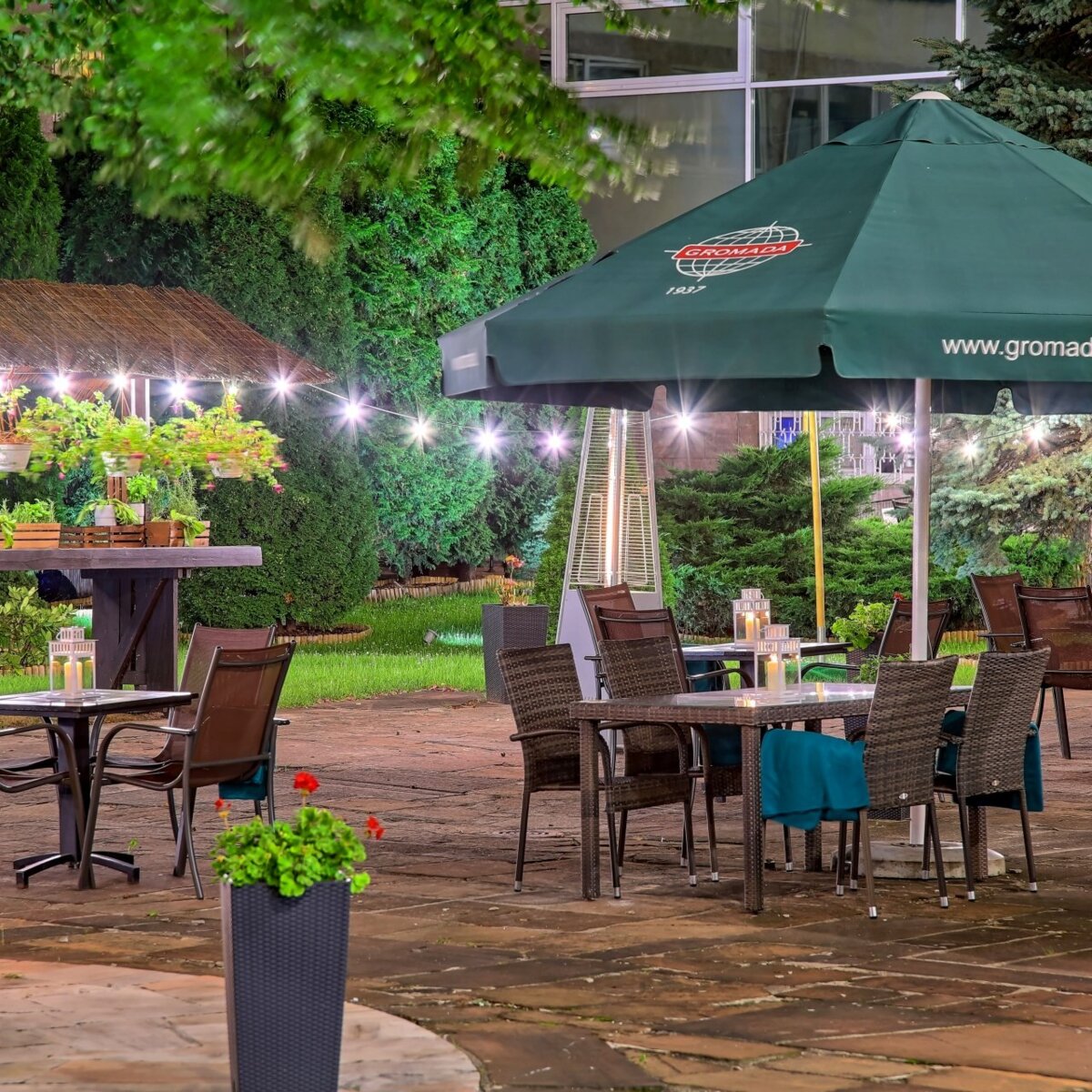 Die Hotelterrasse bietet unseren Gästen die Möglichkeit, ihre Mahlzeiten im Freien zu genießen. Ein exquisites Menü, aromatischer Kaffee, köstliche Desserts oder goldene Getränke sind nur einige der Vorschläge, die wir für Sie vorbereitet haben.