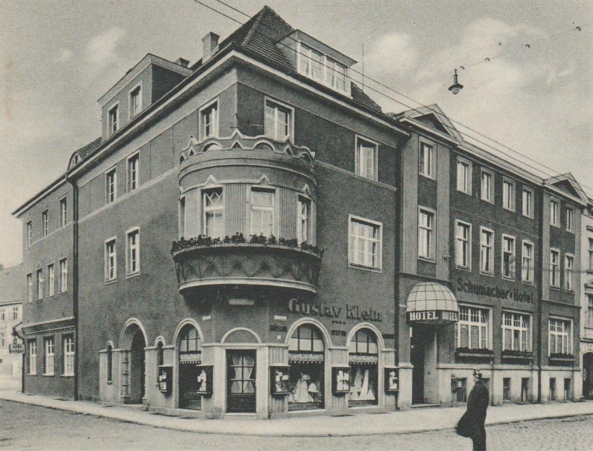 Im Jahr 1885 wurde das Gebäude, das zu dieser Zeit bereits im Grundbuch als Hotel verzeichnet war, von Carl Schumacher aus Köslin gekauft. Das Hotel erhielt seinen Namen (Schumacher) vom Nachnamen des neuen Besitzers. Bis 1945 wechselte das Hotel insgesamt achtmal den Besitzer. In den 1920er Jahren wurde das Hotel erweitert und entwickelte sich zu einer für seine Zeit äußerst modernen und luxuriösen Einrichtung. Nach der Renovierung bot das Hotel seinen Gästen 60 Zimmer mit Zentralheizung, warmem Wasser sowie Bädern mit elektrischer Beleuchtung (damals eine Seltenheit). Das Hotel verfügte über einen Konferenzraum, einen Festsaal, eine Dampfwäscherei und Garagen. Die Übernachtungskosten betrugen 2-3 Mark pro Tag.
