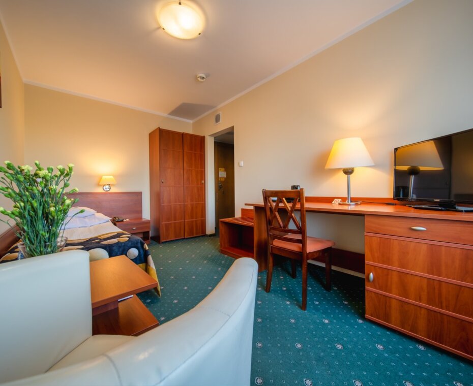 Um den Aufenthalt der Hotelgäste angenehmer und komfortabler zu gestalten, wurden in der Serviceabteilung des Hotels verschiedene Geschäfte eröffnet: eine Konditorei, eine Delikatessenabteilung mit eigenen Produkten sowie ein Pewex, Cepelia und Ruch (alles Ketten aus der kommunistischen Ära). Außerdem gab es eine Wechselstube, ein Gromada-Tourismusbüro der Provinzfiliale, eine Sauna, ein Friseursalon, ein Solarium und Massageräume. Das Hotelpersonal wurde von Hoteliers aus Posen geschult, und die Kellner wurden in einer eigens dafür eingerichteten Klasse an der örtlichen gastronomischen Berufsschule ausgebildet. Eine interessante Tatsache ist, dass das Rodło-Hotel eines der wenigen Einrichtungen dieser Art war, die für Gäste mit Behinderungen angepasst wurden – entsprechende Einrichtungen wurden in den Zimmern, Bädern und auf dem Parkplatz installiert.