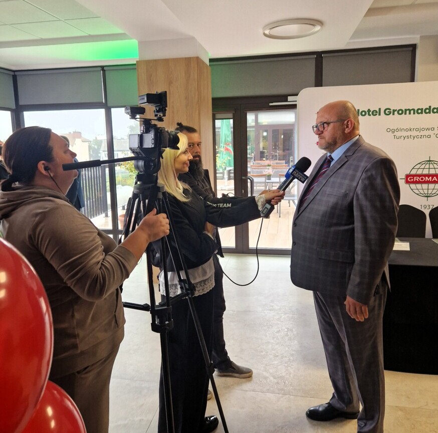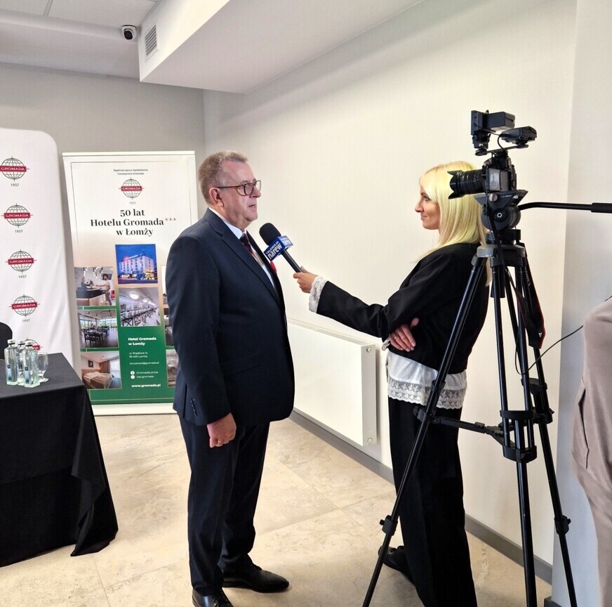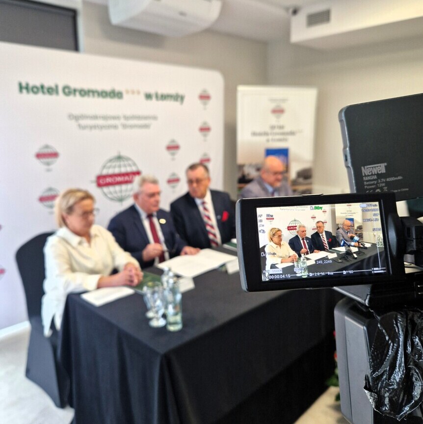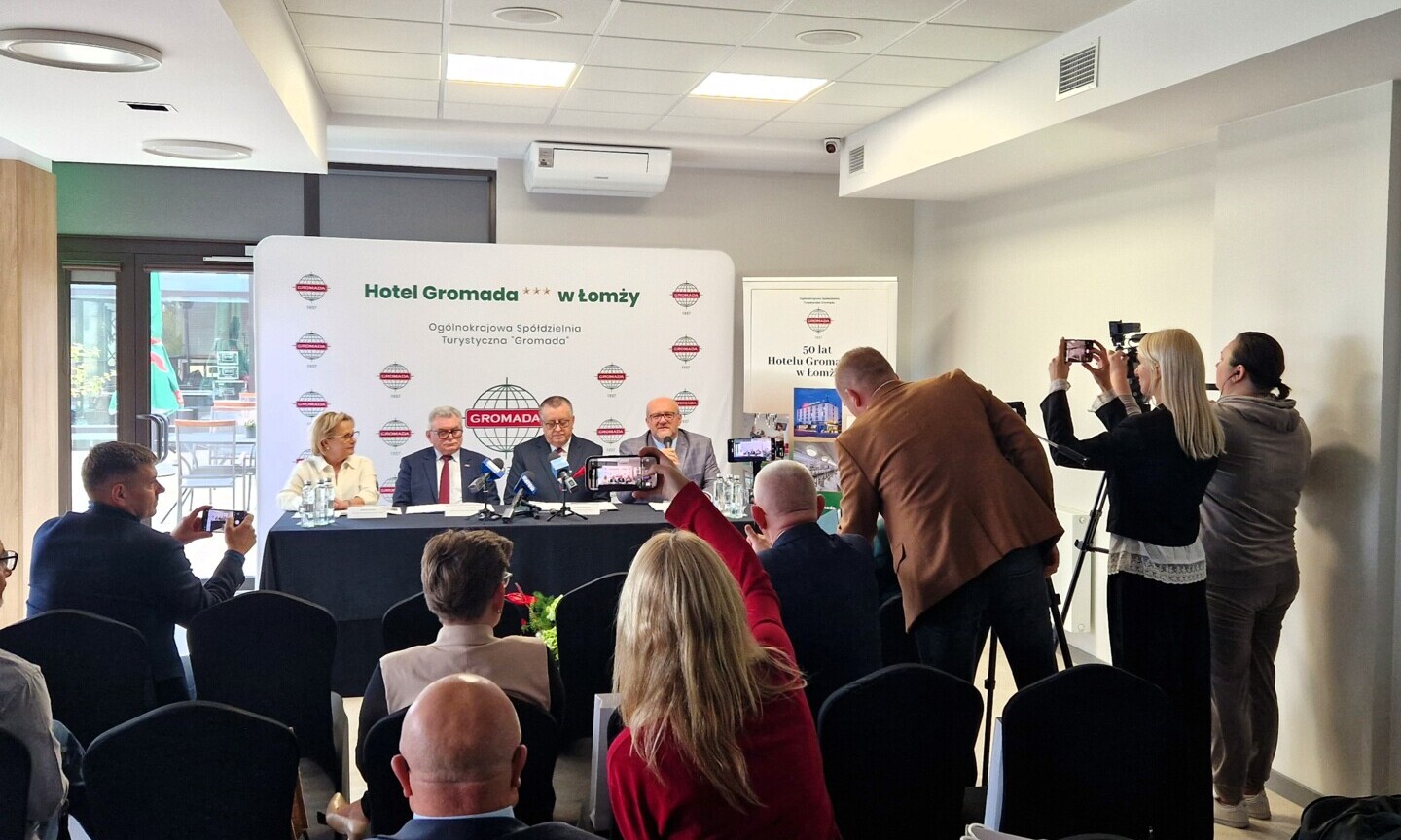 Die Jubiläumsfeier zum 50-jährigen Bestehen des Hotels Gromada in Łomża begann mit einer Pressekonferenz. Daran nahmen teil: der Vorsitzende des Organisationskomitees der Feierlichkeiten, der Direktor des Hotels Gromada in Łomża – Wieńczysław Targ, der Vorstandsvorsitzende der OST Gromada – Krzysztof Moczulski, der Vorstandsvorsitzende des Nationalen Genossenschaftsrates – Dr.-Ing. Mieczysław Grodzki sowie die Aufsichtsratsvorsitzende der OST Gromada – Barbara Tomczyk. Die Konferenz wurde bereits von TVP3 und Telewizja Narew übertragen, und unter den Teilnehmern befanden sich über 15 Journalisten aus Fach- und Regionalmedien. Das Treffen bot Gelegenheit, über die Bedeutung des renovierten Hotels Gromada in Łomża für die Entwicklung und Förderung der Region, über die Zukunft des Gromada-Netzwerks sowie über das Internationale Jahr der Genossenschaften unter dem Motto „Genossenschaften bauen eine bessere Welt“ zu sprechen.
