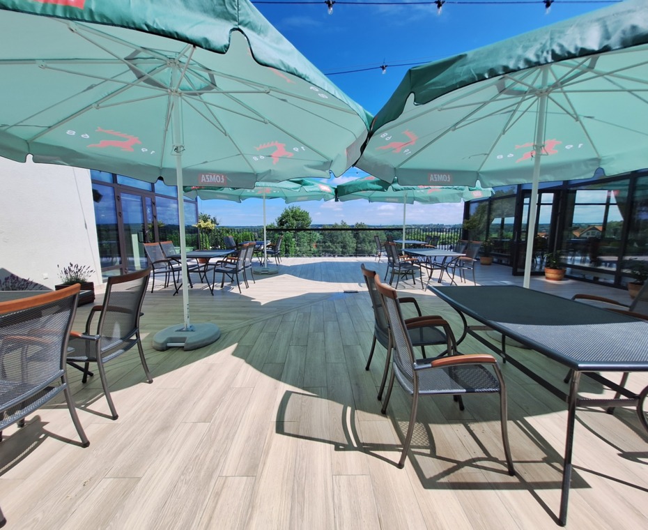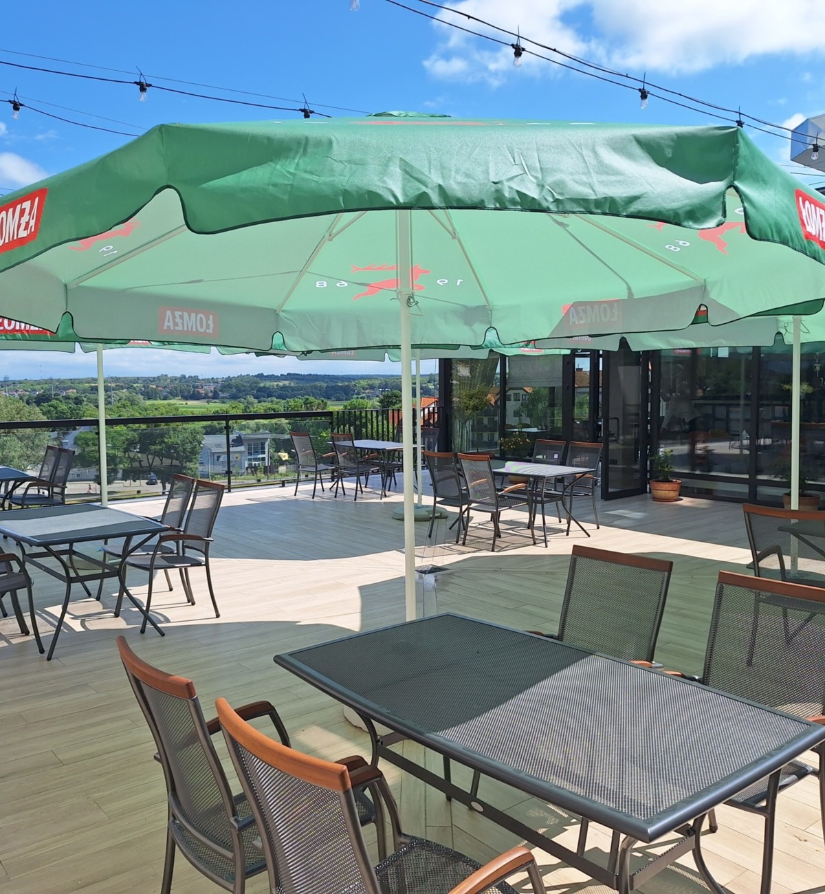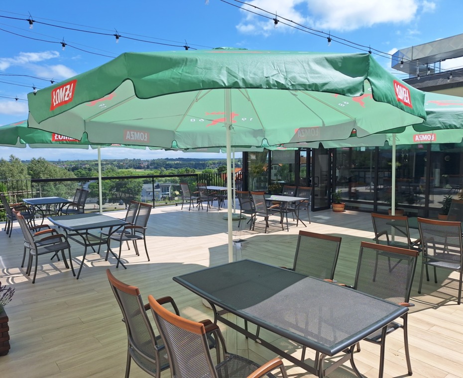 Hotelgäste können die großzügige Terrasse nutzen, ein Gericht aus der Speisekarte genießen oder bei einer organisierten Veranstaltung schlemmen. Von vielen Orten im Hotel Gromada aus hat man einen Blick auf das Narew-Tal, aber es ist von der Terrasse aus, dass wir es im Freien bewundern können. Die Terrasse ist ein Ort, an dem man im Schatten von Sonnenschirmen Gerichte aus der Terrassenkarte probieren und das goldene Getränk kosten kann, das in der lokalen Brauerei produziert wird.