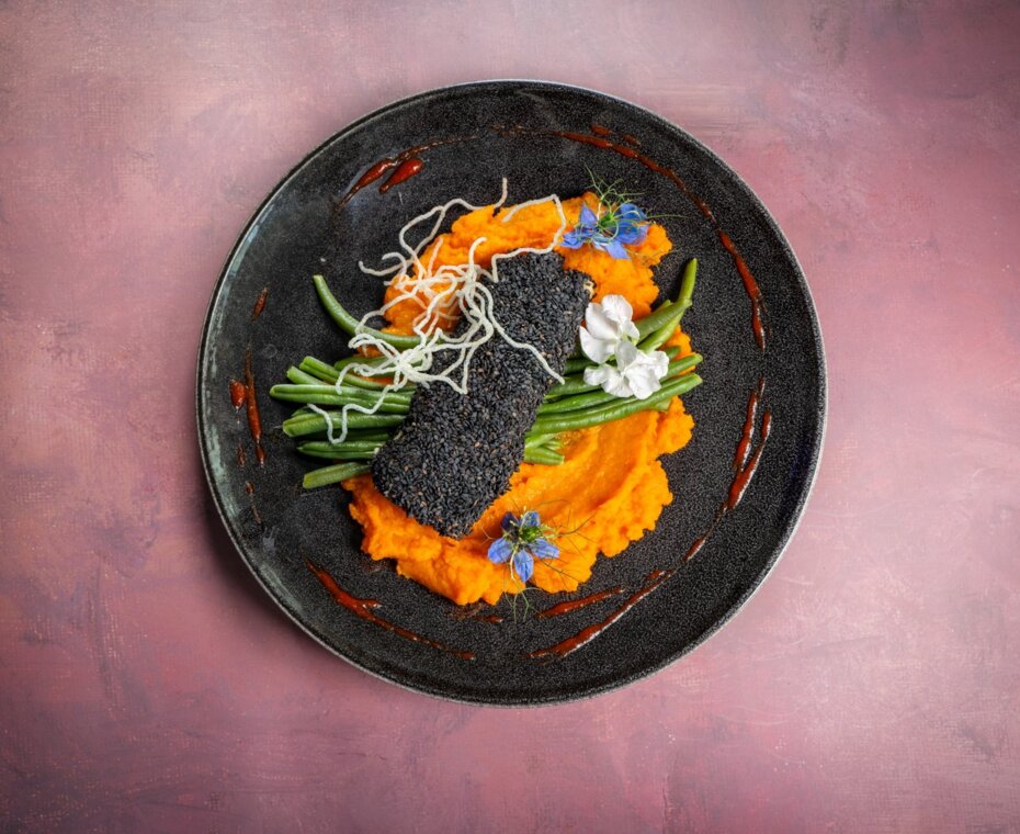 Poultry breast / tuile oil / cream / toasted dumplings / caramelized carrots with broccoli
