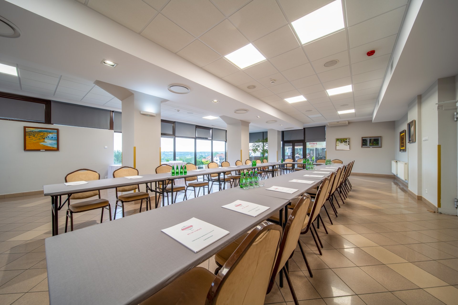 Nasz hotel oferuje doskonałe warunki do organizacji spotkań biznesowych oraz konferencji. Dysponujemy dwiema nowoczesnymi salami konferencyjnymi oraz elegancką salą bankietową. Nasze sale są idealnie przystosowane do potrzeb biznesowych, wyposażone w niezbędny sprzęt audiowizualny i zapewniające szybkie łącze internetowe.