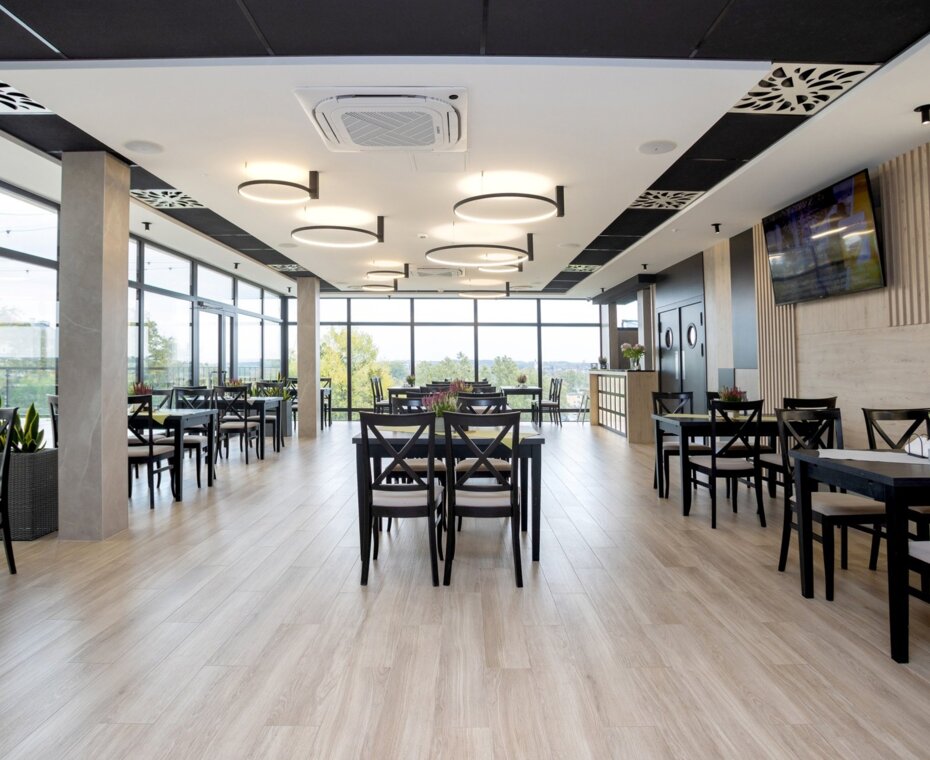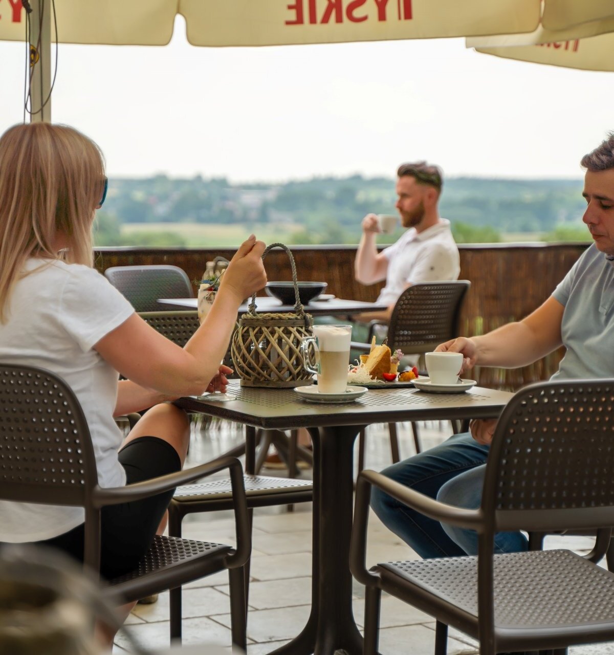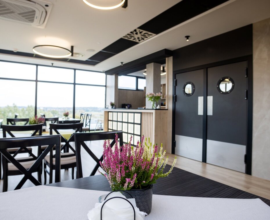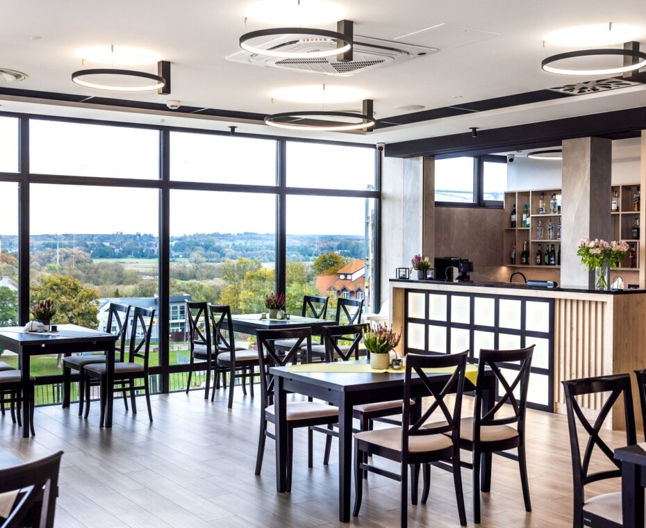 Zarówno z okien restauracji, jak i z przyległego patio rozciąga się widok na Dolinę Narwi, która jest chlubą naszego regionu. Lokal jest dobrze oświetlony, funkcjonalny, klimatyzowany, z dostępem do światła dziennego. Restauracja specjalizuje się w daniach kuchni polskiej, które powstają na podstawie tradycyjnych przepisów. O poranku podawane są pełnowartościowe śniadania w formie bufetu.