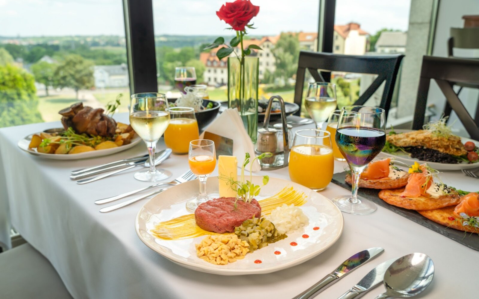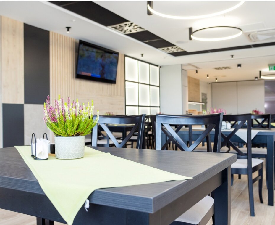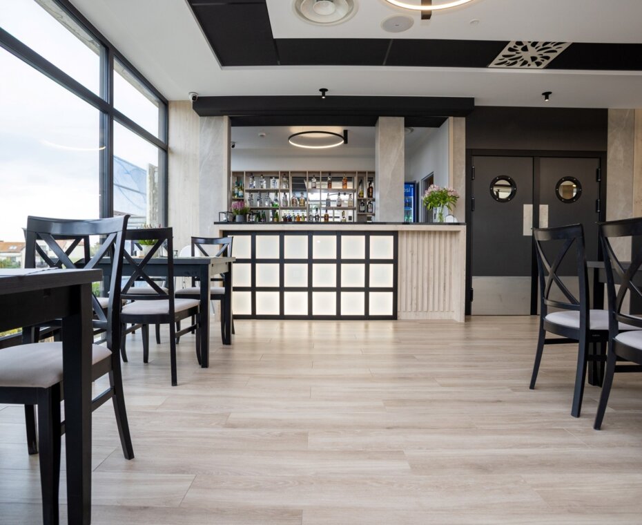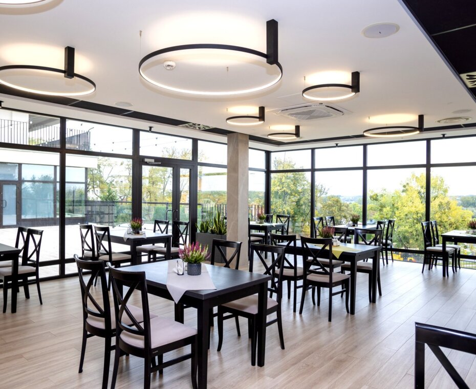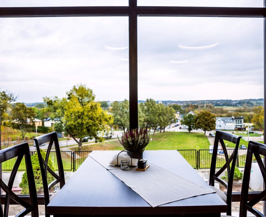 Zarówno z okien restauracji, jak i z przyległego patio rozciąga się widok na Dolinę Narwi, która jest chlubą naszego regionu. Lokal jest dobrze oświetlony, funkcjonalny, klimatyzowany, z dostępem do światła dziennego. Restauracja specjalizuje się w daniach kuchni polskiej, które powstają na podstawie tradycyjnych przepisów. O poranku podawane są pełnowartościowe śniadania w formie bufetu.