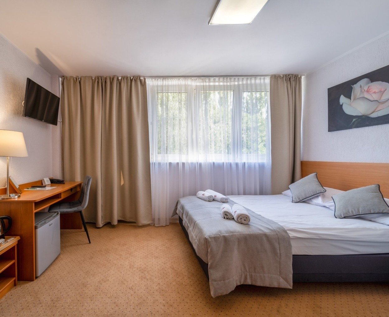Dla Państwa komfortu przygotowaliśmy 3 apartamenty oraz 70 pokoi typu standard wyposażonych w telewizor, telefon oraz zestaw do parzenia kawy i herbaty. Miłośnicy relaksu mogą skorzystać z hotelowej sauny. Na Gości czeka także sala bilardowa oraz restauracja wraz z kawiarnią. Położony tuż obok stadionu miejskiego Hotel Gromada w Poznaniu jest doskonałym miejscem dla Gości uczestniczących w wydarzeniach sportowych, jak również dla biznesowych, którzy chcą odpocząć po całodziennej podróży. Z Hotelu można w łatwy sposób dostać się do Targów Poznańskich, a w zaledwie 15 min, komunikacją miejską do stacji kolejowej i lotniska.
