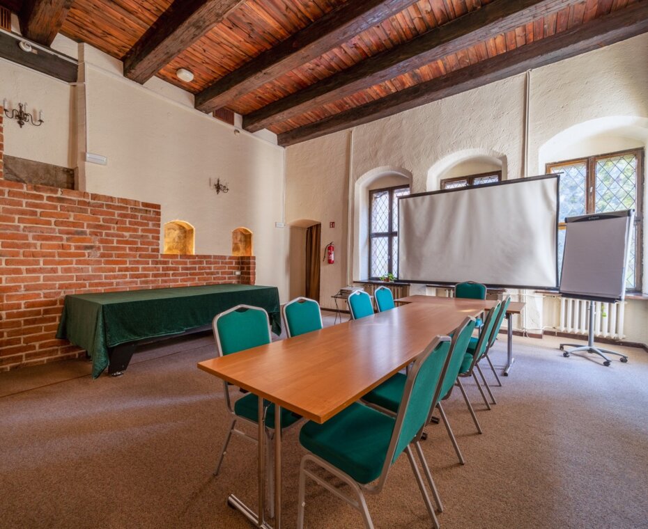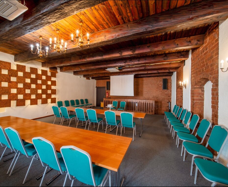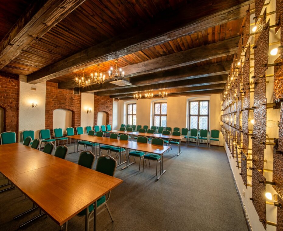 Hotel dysponuje dwiema salami konferencyjnymi. Mniejsza o powierzchni 45m2 doskonale nadaje się na kameralne spotkania biznesowe, rozmowy kwalifikacyjne oraz szkolenia. W zależności od ustawienia stołów i krzeseł może przebywać na niej od 5 do 25 osób. Większa o powierzchni 92 m2 przeznaczona jest dla maksymalnie 60 osób. Jest ona idealnym miejscem na zorganizowanie konferencji, jak również imprez firmowych. Zapewniamy kompleksowe wyposażenie pomieszczeń. Oferujemy: rzutnik, ekran, flipchart, nagłośnienie stacjonarne, dostęp do Wi-Fi oraz światła dziennego. Dodatkowo większa sala wyposażona jest w klimatyzację. Możemy zorganizować dla Państwa przerwę kawową, lunch lub uroczystą kolację.