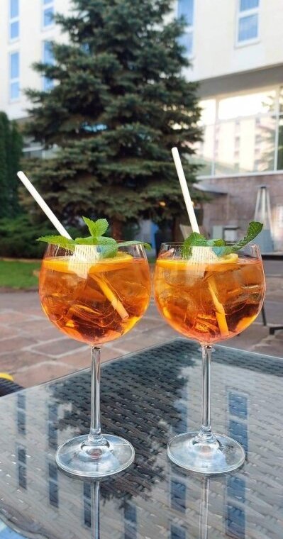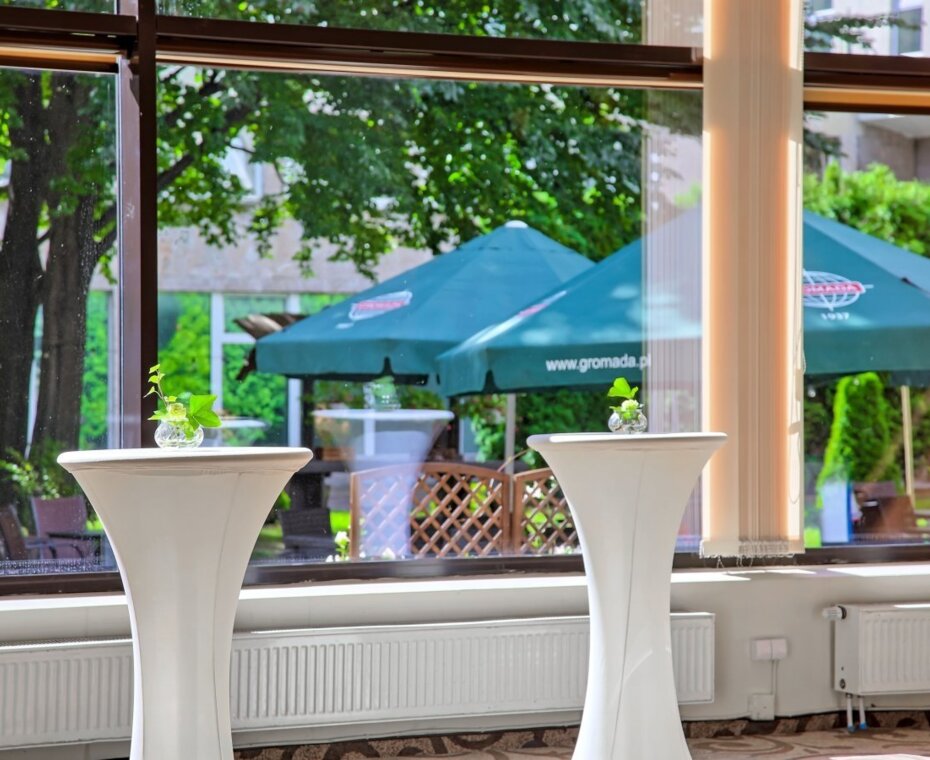 Je nach Jahreszeit und Vorlieben der Gäste kann die Terrasse auf unterschiedliche Weise genutzt werden. Im Sommer ist es der perfekte Ort für Getränke, Mittagessen im Freien, Hochzeiten, Partys und Konzerte. Im Winter mit Schnee bedeckt, strahlt es den Zauber winterlicher Ruhe aus und schafft eine gemütliche Atmosphäre sowohl hinter den Fenstern von Konferenzräumen als auch von Hotelzimmern.Von den Konferenzräumen aus gibt es einen direkten Ausgang zum grünen Patio, was den Gästen sicherlich die Pausen bei Geschäftstreffen angenehmer machen kann.
