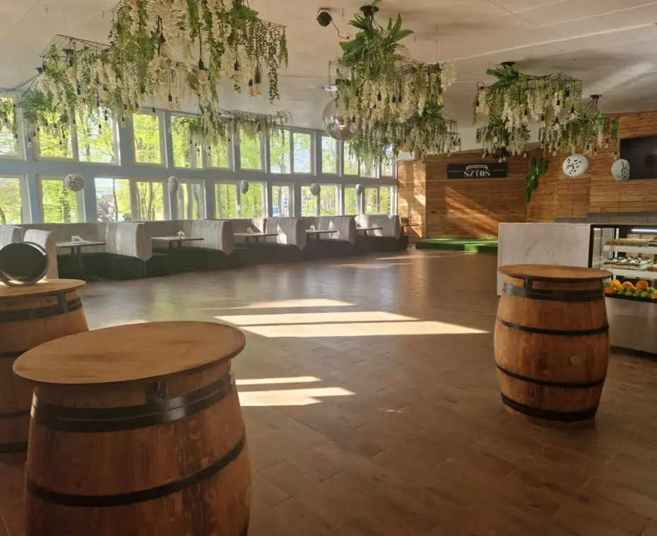 Das Resort verfügt über einen ausgewiesenen Bereich zum Grillen oder Lagerfeuern sowie über das Restaurant „Sztos“, das köstliche hausgemachte Küche und Tanzabende mit Live-Musik bietet. Gäste können sich auch für Vollpension entscheiden.